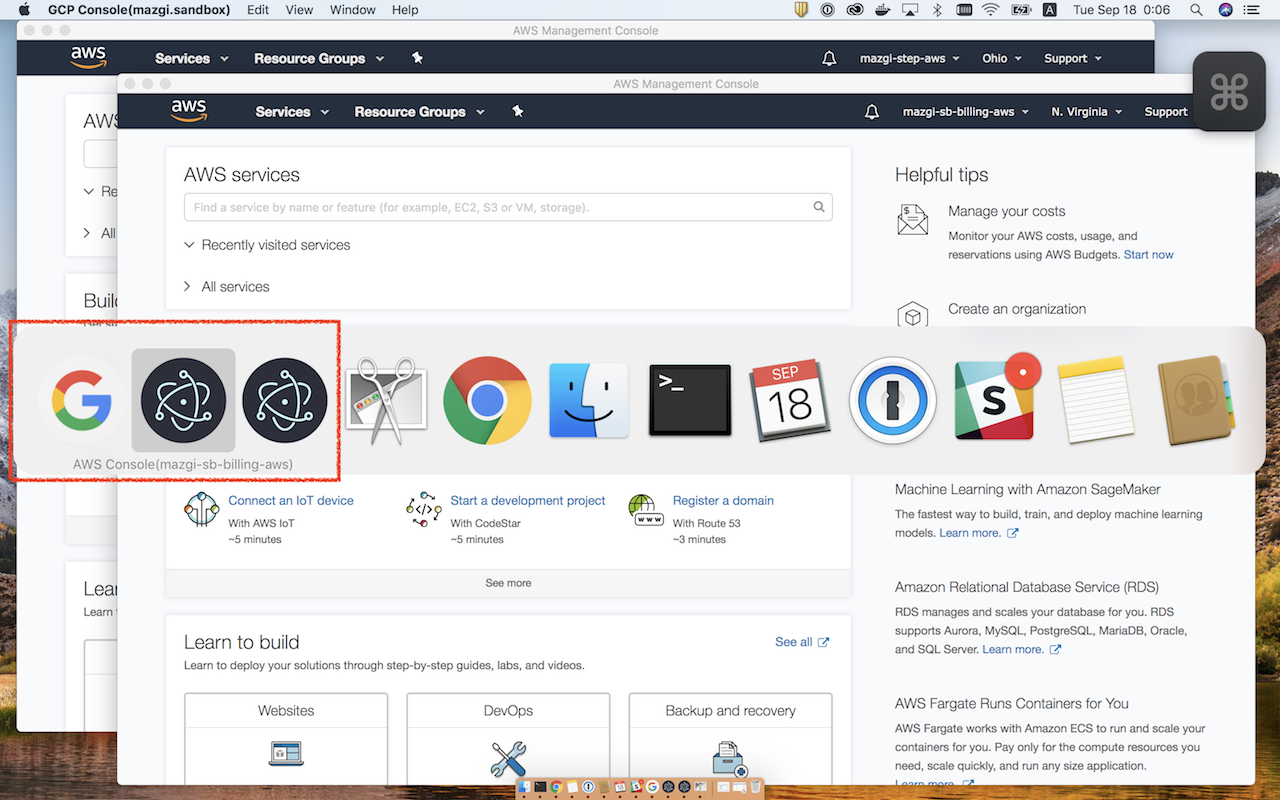 sandbox 用の AWS アカウントと GCP プロジェクトを作ったついでにそれぞれの Web 管理画面をNativefierで専用アプリにした。