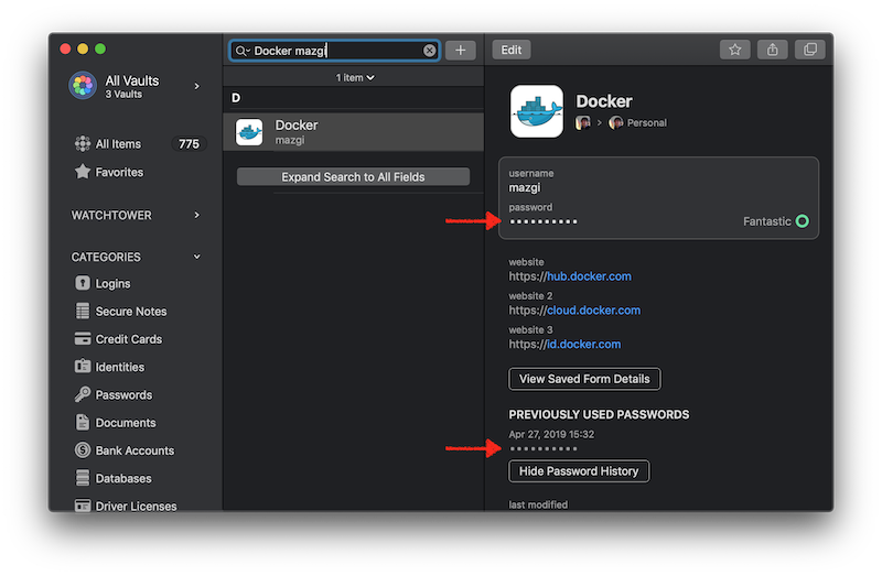 Docker Hub に限らずパスワード管理はだいたい1Passwordで行なっているのだけど今回のパスワード更新でもちょっと便利だった。